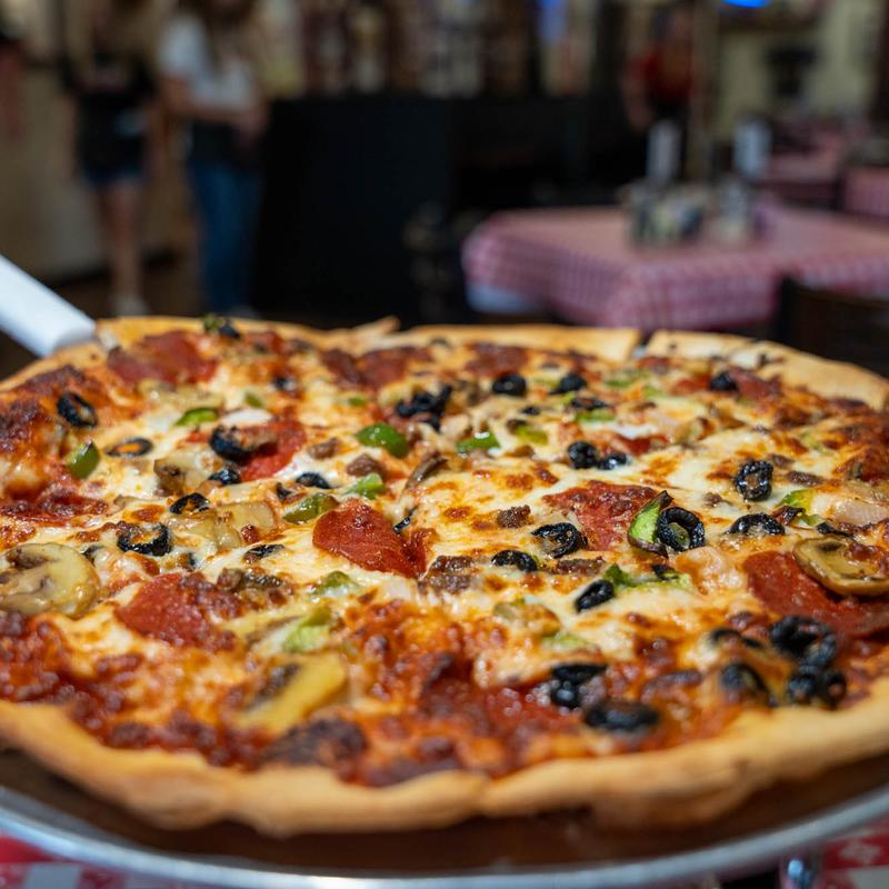 So yummy! Was in from mobile al and this was such a quaint find!!! We loved it!! We ordered 1/2 kitchen sink & 1/2 meat lovers. Was amazing pizza